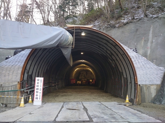 当工事は、一般国道452号盤の沢道路の通行不能区間解消を図り、地域間交流の活性化及び物流の効率化の支援を目的とした事業で、その内の鏡トンネルを建設する工事です